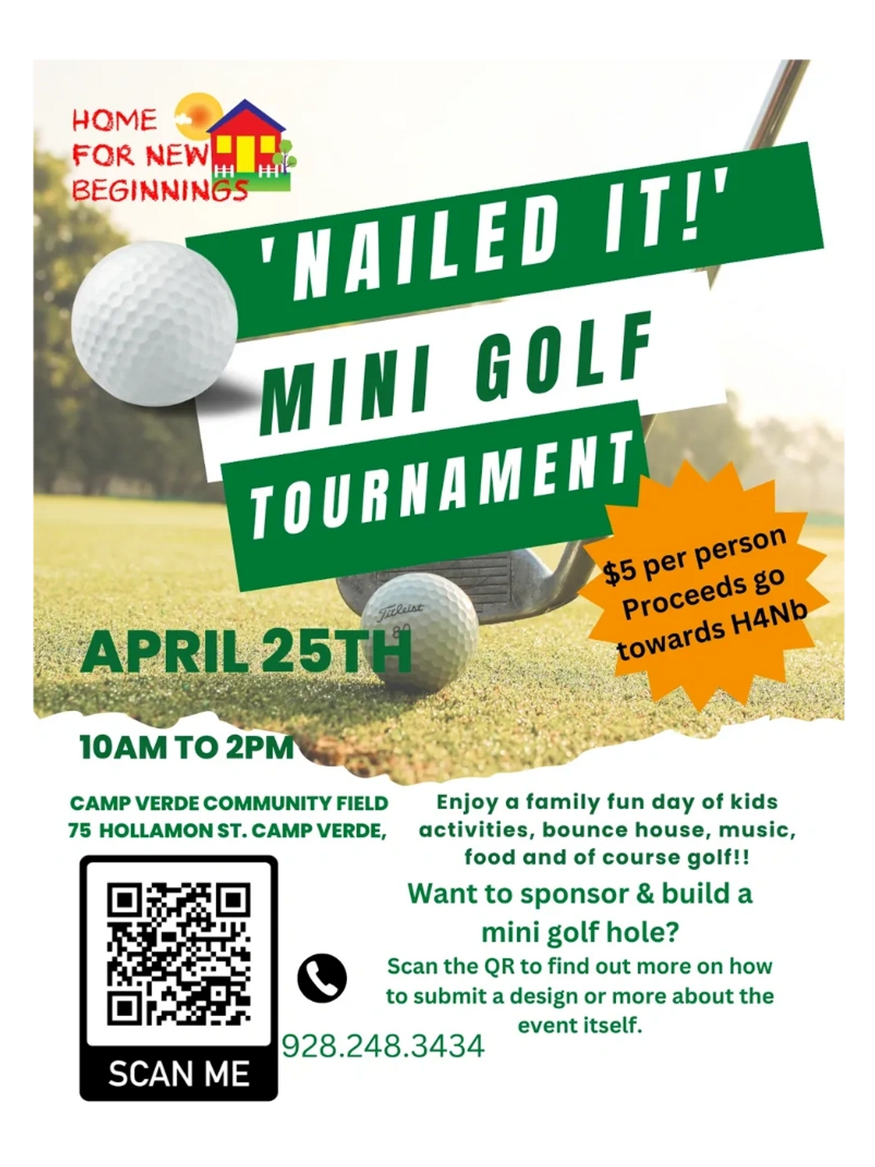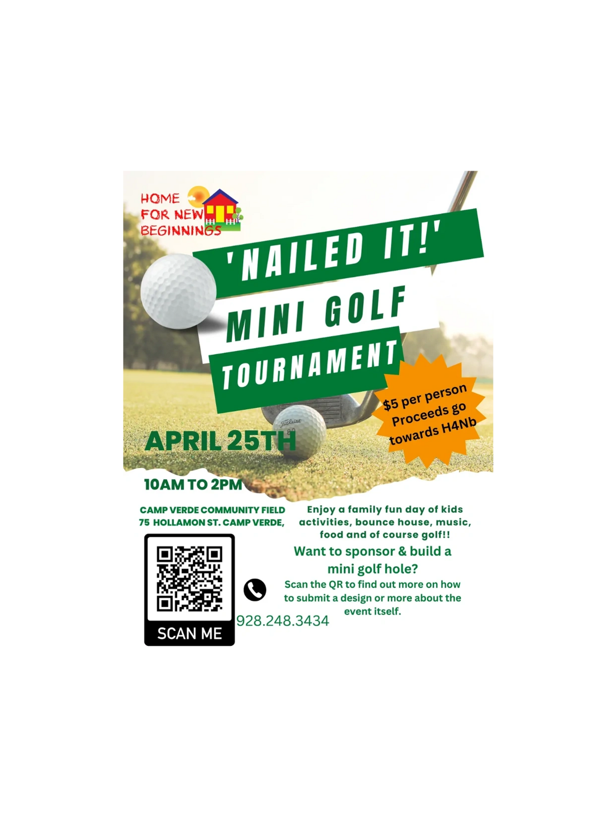 Home for New Beginnings is excited to bring back the 3rd Annual 'Nailed It!' Mini Golf Tournament to Camp Verde. This event, like last year, will be sure to bring a day filled with fun family activities that the Verde Valley doesn't have! All the while raising funds for our non-profit.